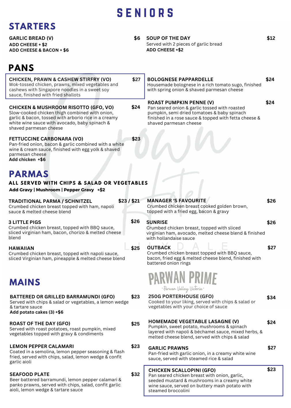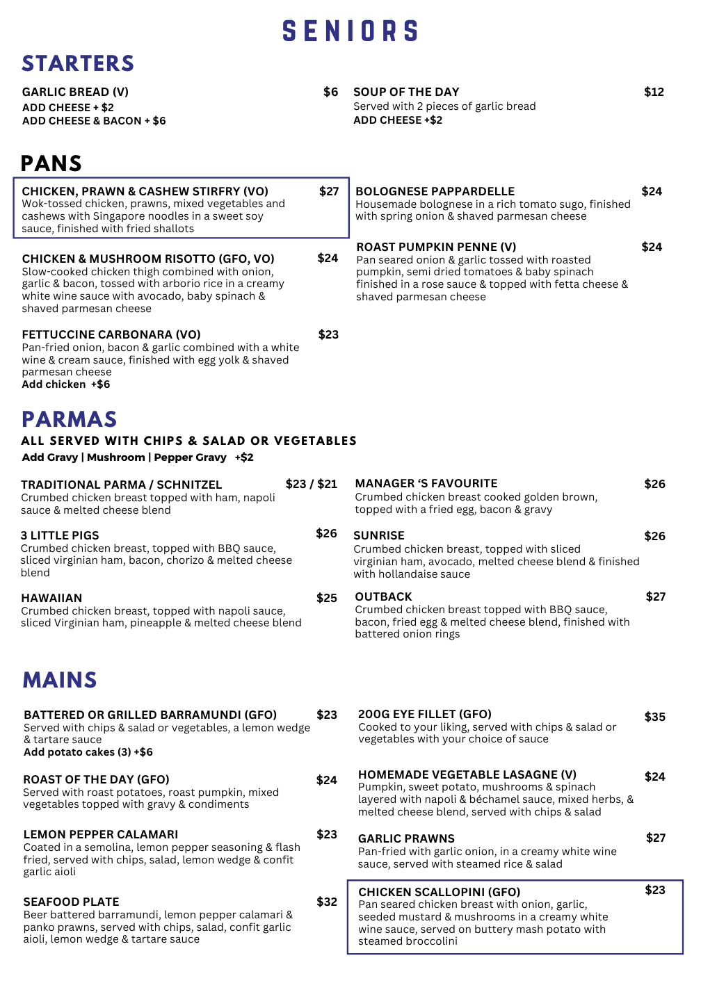 Bistro Menu